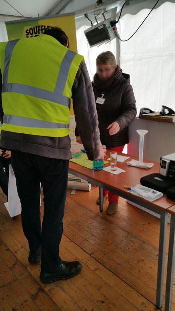 Les participants prennent une paille dans la partie basse de l'éthyloborne et peuvent auto contrôler leur alcoolémie. Si le taux analysé est inférieur à